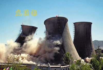 ■今年5月16日,甘肅省對高耗能、高污染的甘肅電投永昌發電公司1-5號火電機組進行拆除爆破。標誌著甘肅節能減排、關停小火電機組的工作全面開始。 新華社