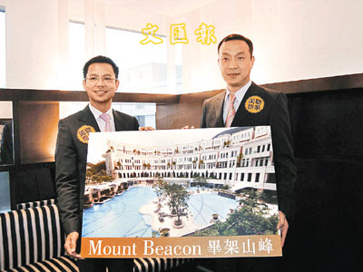■鍾少權(左)表示,畢峰上排16號屋意向價維持6,800萬元。旁為陳坤興。 本報記者梁悅琴 攝