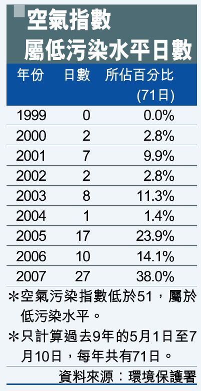 空氣指數屬低污染水平日數 (圖)