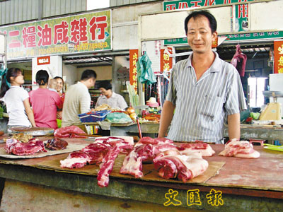 ■12日凌晨,深圳一名豬販駕駛電單車載125公斤豬肉前往當地市場時,被4名電單車慣匪連車帶肉全部搶去。圖為曾遭搶劫的王先生。本報深圳傳真