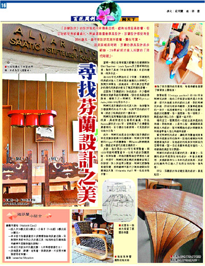 阿爾托的設計是芬蘭的代表。事實上,芬蘭的設計即是對生活的設計,本著功能實用、美感創新和以人為本的設計風格,其設計的觸角早已進入了我們生活的每一個角落。