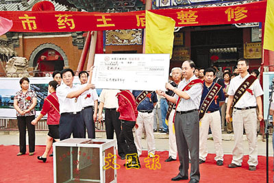 【本報駐河北記者王海軍石家莊電】香港隆泰貿易行與北京同仁堂(集團)有限責任公司、天津中新藥業集團股份有限公司等海內外醫藥企業,日前發起安國市藥王廟整修擴建捐資活動,並在藥王廟前舉行了整修擴建捐資儀式,截至目前共捐資近500萬元人民幣。