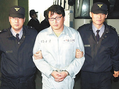 ■近年韓國政府積極整頓家族財團不法行為。圖為年前SK集團主席涉非法股市買賣被捕。 資料圖片