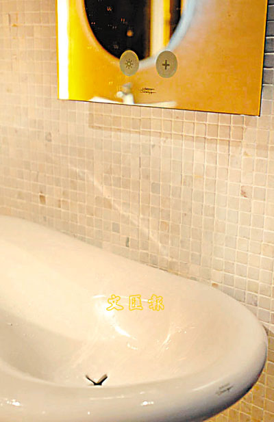 ■水龍頭原來暗藏在鏡子底部,只要按「+」掣就有水出,另一個是燈掣。
