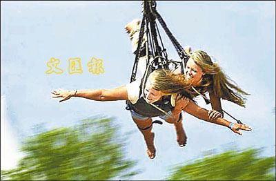 ■威斯康星州仿笨豬跳機動遊戲斷纜,導致一名少女跌死。圖為玩該款遊戲的女遊客。 網上圖片