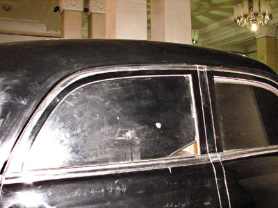 有細心人士發現,斯大林送給毛澤東的蘇製吉斯轎車完好無損。而朱德總司令的「座駕」卻有遭受襲擊痕跡。在其前擋風玻璃上,可以看到有8處彈眼。而在駕駛員副座後面「首長專座」側面玻璃處,更有兩處彈眼清晰可見。