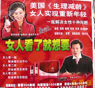 ■內地個別廣告中性暗示意味明顯,北京兩位人大代表建議對廣告實施分級制度。網上圖片