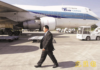 15日,在德國梅-前州首府什未林市附近的帕希姆機場,中國林德國際運輸代理有限公司(簡稱林德公司)董事長龐玉良從抵達的貨運飛機旁走過。此航班是林德公司7月1日接管帕希姆機場以來安排的第一架貨運航班。新華社