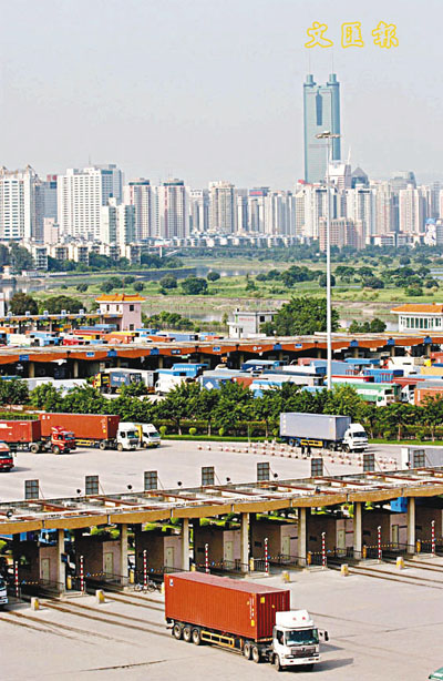 ■深三大陸路口岸實施海關電子化核放,加快粵港兩地貨物進出時間。圖為深圳皇崗口岸。