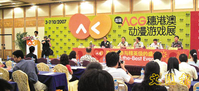 ■首屆「穗港澳動漫遊戲展」將於10月3至7日在穗舉行。圖為新聞發布會現場。 楊瀅 攝