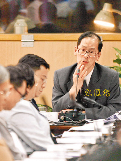 ■曾德成對區議員十分關心國民教育工作感到意外,曾略有感慨,需稍作停頓才繼續發言。 本報記者高仲明 攝