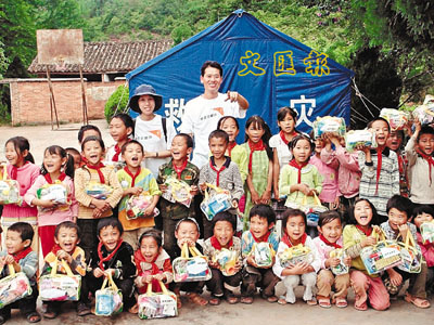 ■宣明會工作人員給災區的孩子送上100個兒童歡樂包。
