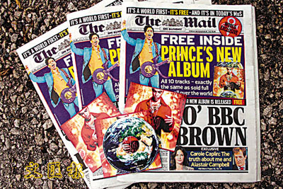 英國《星期日郵報》7月15日號,隨報附送了著名美國歌手王子(Prince,他也曾用過一個奇怪的符號作名字)的最新專輯《Planet Earth》。即使免費下載的MP3音質亦稍遜,這回王子的碟沒減料沒收錢,還保證與日後市販版一模一樣,可算在音樂界史無前例的行為。