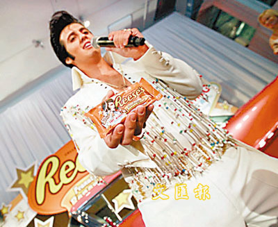 圖中所見的貓王當然是假扮的,因為8月16日為貓王皮禮士利的逝世30周年,以朱古力花生醬飛碟馳名的Reese,便順道出品印有貓王嘜頭的限量版本。據聞貓王生前最喜愛花生醬香蕉三文治,再配合他喜愛的1957年粉紅卡迪拉克配色,真正打造正宗宣傳「生招牌 」。