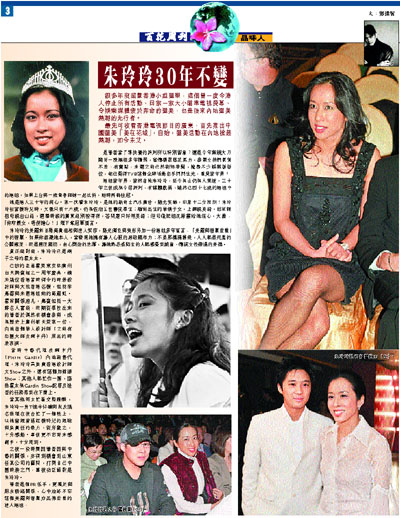 她是港人三十年的甜心。第一次看朱玲玲,是她的新奇士汽水廣告,陽光笑臉,印象十二分深刻!朱玲玲初當模特兒時,大概只有十六歲,仍為佐治五世書院學生;緬甸出生的華僑子女,上課說英語,回家跟祖母說台山話,選舉時說的廣東話別扭得很,答問題只好用英語;但司儀肥姐沈殿霞給她信心,大讚:「你咁靚女,唔使擔心!」埋下奪冠軍預言。