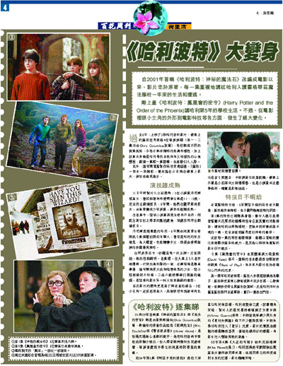 剛上畫《哈利波特:鳳凰會的密令》(Harry Potter and the Order of the Phoenix)講哈利第5年的學校生活。不過,從電影裡頭小主角的外形到電影特技等各方面,發生了絕大變化。