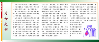 在香港有很多女性身兼數職,工作繁忙,回家還要帶小孩、接送、看功課、做家務,星期天工人放假,自己一腳踢,而男人很多都蹺起手等食飯,功課免問。數家庭的建樹遠遜於妻子,有些還出外花天酒地,剩下妻兒在家。這樣的男人要來作啥?