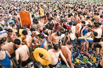■四川遂寧市「中國死海」度假區人滿為患。 新華社