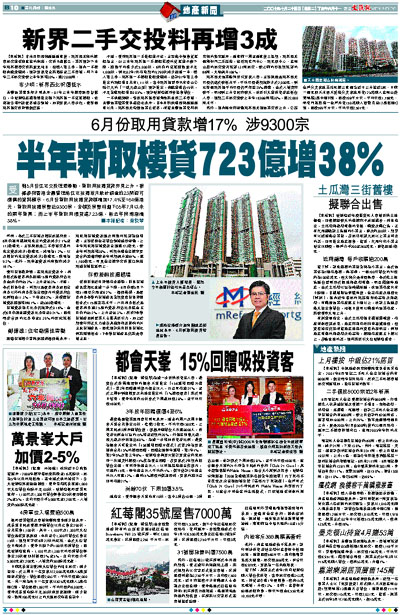 受到5月份住宅交投理想帶動,新取用按揭貸款亦見上升。根據參與香港金融管理局住宅按揭每月統計調查的23間認可機構的資料顯示,6月份新取用按揭貸款額增加17.4%至164億港元,新取用按揭宗數近9300宗,金額及宗數均創下05年7月以來的兩年新高;而上半年新取用樓貸達723億,較去年同期激增38%。
