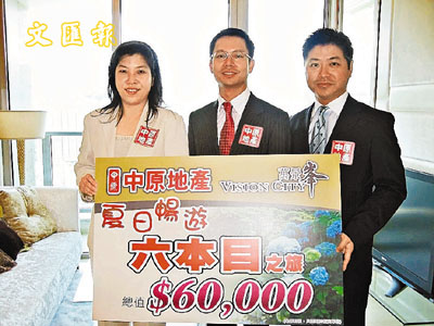 ■信置鍾少權(左二)表示,經中原購入萬景峰大型單位的首三名買家可獲日本之旅優惠。左三為中原地產王浩聰。 本報記者林淑儀 攝