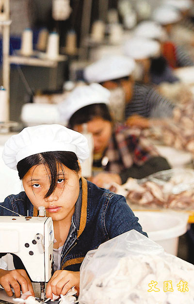 ■專家認為,新政策勢必影響在內地從事加工貿易的港商。圖為深圳製衣工人。資料圖片