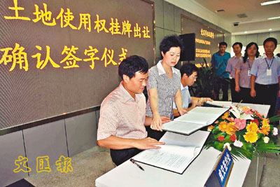 ■北辰公司以92億標下長沙地王,進行簽約。 本報湖南辦傳真