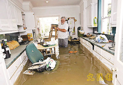 ■這名居民的住所嚴重水浸,又沒潔淨食水供應。 路透社