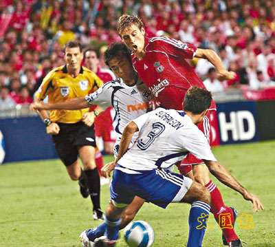 【本報訊】(記者 郭思華)神奇!頂級!超卓!著名足球評述員黃興桂的「金句」,昨日竟由利物浦隊長謝拉特的出處轉移到南華隊長李海強身上。昨晚「巴克萊亞洲錦標賽」壓軸賽事,雖然利物浦多位星級球員如謝拉持、托利斯、賴恩巴布等缺陣,但無損「紅軍」強勁實力,以3:1戰勝南華,但南華隊長李海強在上半場34分鐘一記40碼罰球勁射死角破網,攻破紅軍大門,贏得全場歡呼不絕。