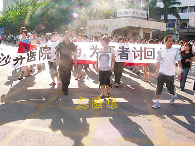 事後,死者家屬到沙井人民醫院理論,要求醫院負責曾沛林兒子及老人的撫養費100萬元人民幣。醫院一直未有負責人出面處理,結果引起村民及家屬不滿,逾500人今日在深圳市新橋路拉橫額抗議,要求為死者討回公道。