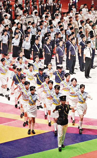■香港與內地青少年步操慶回歸。本報記者曾慶威 攝
