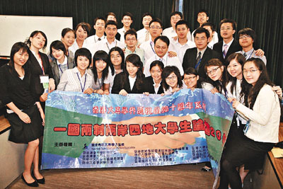 【本報訊】(實習記者 吳婷) 「總結過去,展望將來」。香港回歸十周年,內地、以及港澳台學生雲集香江,總結「一國兩制」在港實施的情況。有內地學生代表坦言,「沒有『一國兩制』,就沒有香港的順利回歸……香港的快速發展更與『一國兩制』分不開。」有來自台灣的學生代表更大讚「一國兩制」,指「一國兩制」彈性很大,可以避免不同背景人士因缺乏了解而造成的「衝動結果」。
