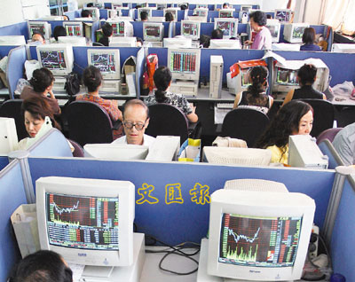■滬深股市昨繼續雙雙走高,上證綜指和深證成指分別以4371.51點和14703.17點改寫歷史新高紀錄。圖為蘭州股民在證券行觀察大盤走勢。路透社