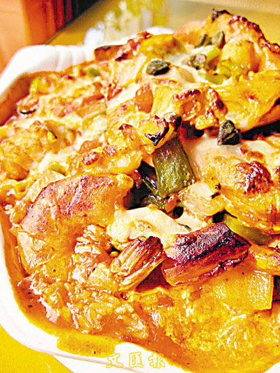 單看賣相已相當吸引,既有原隻大蝦,還有青口和魚,加上清新的香芹和香草,味道份外濃郁,深受白領人士歡迎。吳師傅表示,這個焗飯的竅門,是先將飯煮好,然後再燴上材料,最後加上芝士烤焗,令海鮮的鮮味,緊緊鎖在焗飯內。