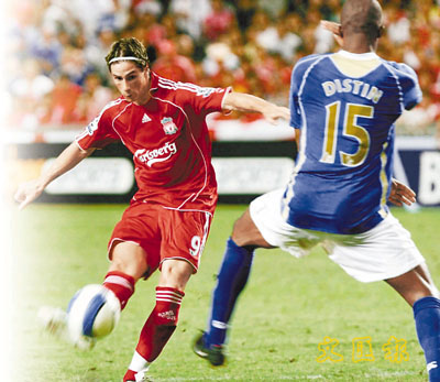 【本報訊】(圖、文:潘志南、郭思華、岑維康)頂住炎熱無風的天氣,兩隊英超勁旅「紅軍」利物浦及樸茨茅夫昨晚在全場爆滿的香港大球場上演一場精彩賽事。「巴克萊亞洲錦標賽」昨晚進行季軍及冠軍戰,利物浦在下半場換入「西班牙王子」費蘭度托利斯(托利斯)及「神奇隊長」謝拉特加強攻力,但法定時間仍以0:0打成平手,最終樸茨茅夫在12碼憑門將占士勇撲2球,以4:2擊敗利物浦取得冠軍。占士的神勇表現亦被選為大會的最佳球員。