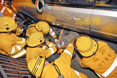 ■消防正設法拯救被車連環撞倒復捲入車底被困拾荒老婦。