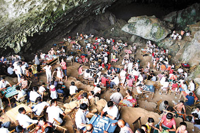 ■29日,江西萍鄉市最高氣溫達38攝氏度,許多群眾到山洞避暑納涼。 新華社