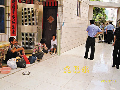 ■愛滋幫勒索港商不遂,強堵港商寓所門口,深圳警方派人將他們抬離現場。本報深圳辦傳真