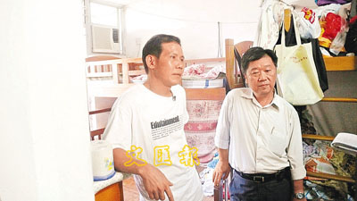 ■陳憲高(左)衷心感謝區議員龔柏祥多日來對他們一家的幫助。本報記者郭曉樂 攝