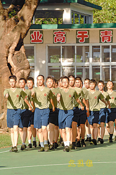 ■解放軍駐港部隊粉嶺新圍軍營培養青少年熱愛祖國、了解國防的「香港青少年軍事夏令營」學生接受步操訓練。