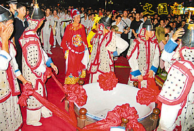 中秋的傳統項目博餅起式。 朱慶福 攝