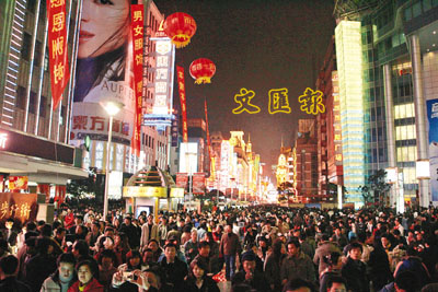 ■恆地向華置及李家傑收購中國公司阿曼威娜的100%權益,擁有上海黃浦區南京東路步行街起點地段一塊10.73萬平方呎的地塊。圖為繁華的上海南京路。 資料圖片