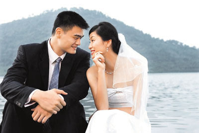■6日,姚明與葉莉在上海浦東香格里拉酒店舉行婚禮。圖為正式公佈的婚照。 中新社