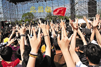 ■今年5月,在北京舉行的第八屆迷笛音樂節吸引了萬餘名從全國各地趕來的樂迷。上海的搖滾樂隊往往要通過此音樂節獲得業界的認可。