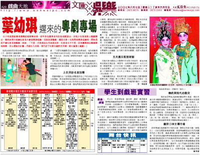 另最後聽到消息,葉幼琪早前主演的兩齣大受歡迎的歌唱舞台劇《周璇》和《小明星》的DVD現已印製好,也一併在「葉幼琪好戲會名伶」的演出檔期中推出,去看戲可以得雙重得著,大家要把握機會了。