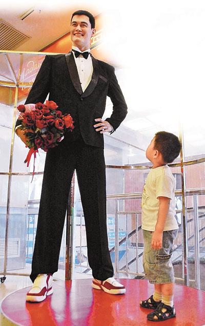 姚明大婚,上海杜莎夫人蠟像館也及時為小巨人穿上了新郎裝,以另類的方式送上新婚祝福。而遊客市民更是踴躍與「新郎」合影,為姚明當上一回「伴娘」、「伴郎」。 ■文:本報上海新聞中心記者唐湛嫣,實習記者凌馨、趙飛飛、湯偉慶 圖:路透社