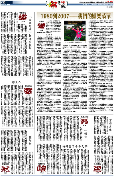 從這個年代開始,在物質上已逐漸擺脫平均主義帶來的貧困與匱乏的中國人,開始關注娛樂的「娛樂性」來,那是國人開始學會有選擇性的娛樂自己,娛樂的多樣化不僅讓國人品嚐到了一道又一道豐富精美的娛樂大餐,而且還讓國人看到了娛樂背後的浮華與喧囂,而在這些浮華與喧囂中最具有代表性的當數: