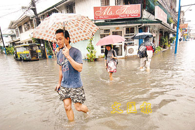 ■暴雨襲馬尼拉,街頭嚴重水浸。法新社