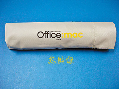 由即日起至9月15日,凡於Microsoft特約經銷商購買Office 2004 for Mac標準版、師生版或VUP(Version Upgrade)版,即可獲精美雨傘一把。雨傘沿用麥金塔色系,上印有「Microsoft Office:mac 2004」字樣,與麥金塔系列產品設計同出一轍,同樣帶有Cyber感覺,可於這個夏天為你帶來清涼感受。
