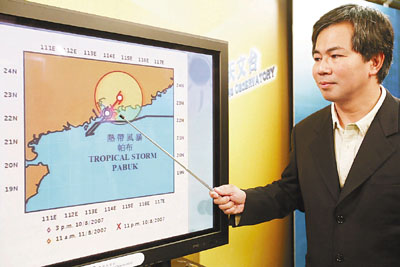 ■甄榮磊說「帕布」是受到另一個熱帶風暴影響折返香港。本報記者高仲明 攝
