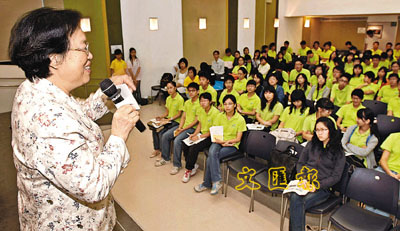 ■譚惠珠向學生講解「一國兩制」與「高度自治」,並解答同學們的問題。本報記者李志樑 攝